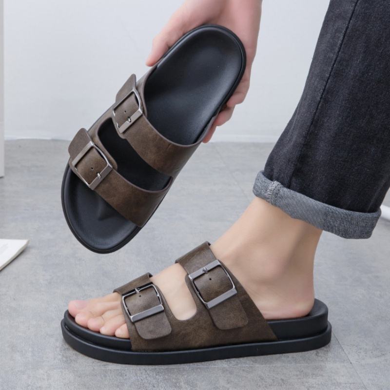 Nouvelles sandales plates en cuir véritable souple 2026 pour hommes, vente en gros, directement de l'usine, pour la maison et l'extérieur