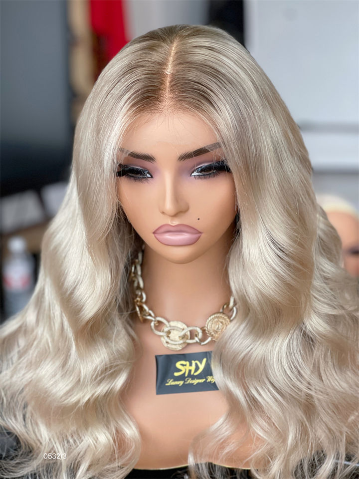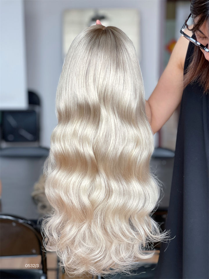 Perruques Lace Front Ondulées à Nœuds Invisibles, Moins de Volume, Cheveux Vierges Bruts Blond Platine 2026 pour Femmes Blanches