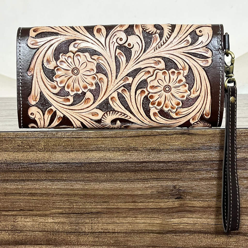 Product name:Hand Tooled Genuine Leather Wristlet Wallet