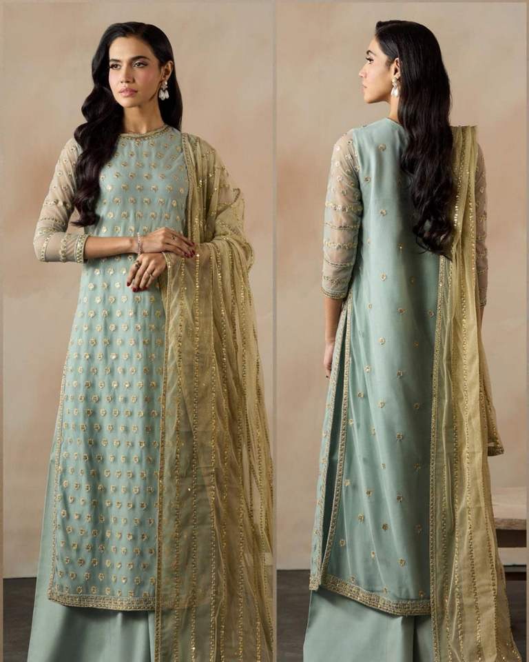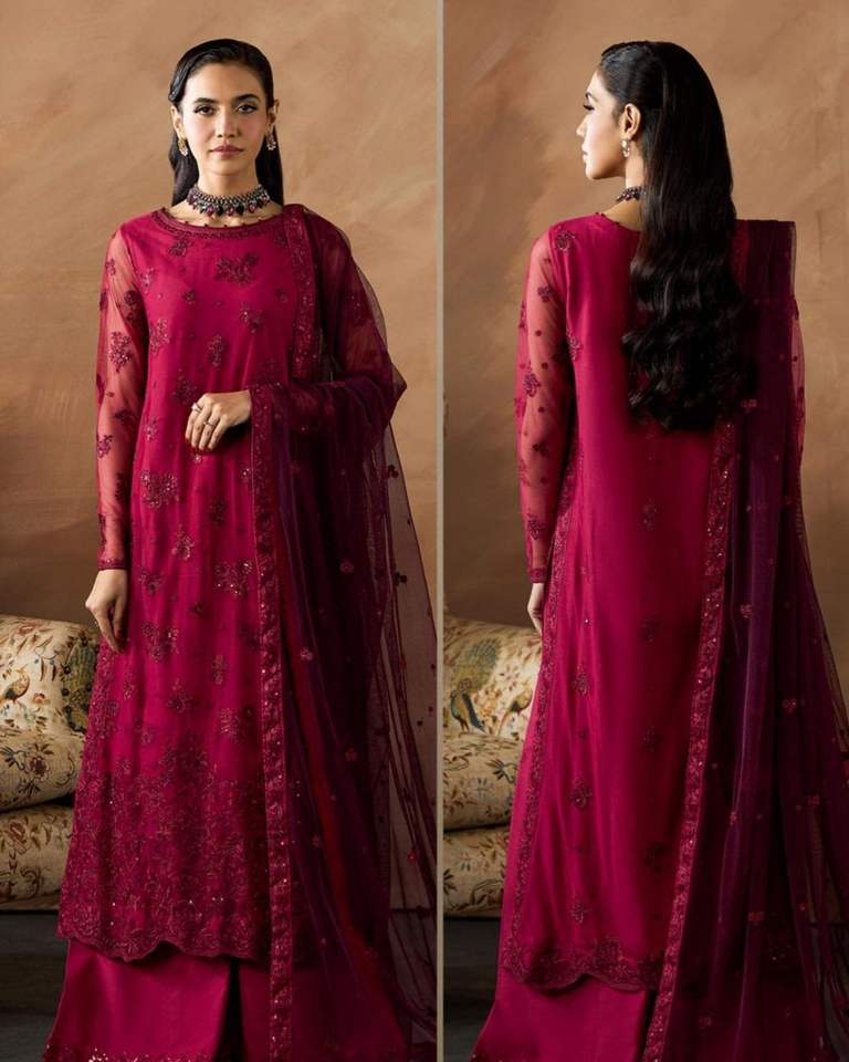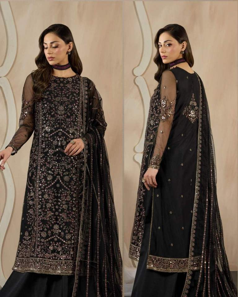 2026 Luxury Heavy Embroidered Net 3-Piece Salwar Kameez Bridal Wedding & Party Wear Wrinkle-Free Quick-Dry