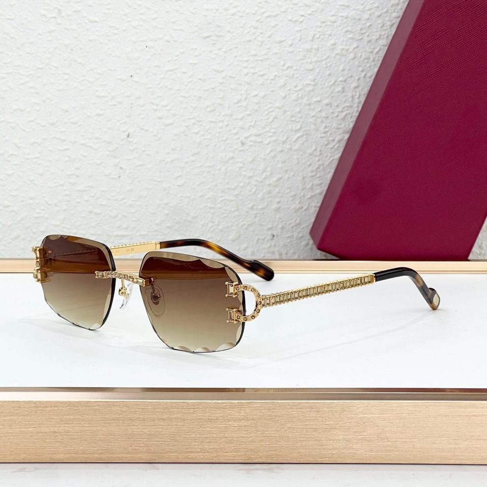 Lunettes de soleil de luxe sans monture 2026 CT0701 Ka Jia, verres taillés diamant, monture ovale en métal, style hip-hop, protection UV400, pour femme, design personnalisé
