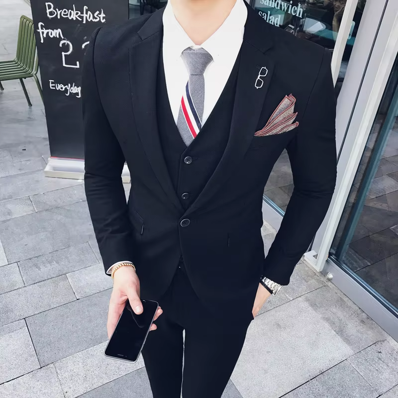 Costume Homme 3 Pièces 2026 – Ensemble de Bureau et d'Affaires Haut de Gamme : Veste, Gilet et Pantalon – Coupe Slim à Revers, Un Bouton – Idéal Mariage et Cérémonie