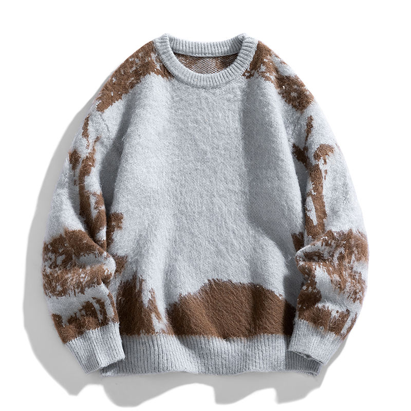 Pull-over en tricot jacquard pour homme 2026, col rond, en coton, pour l'hiver