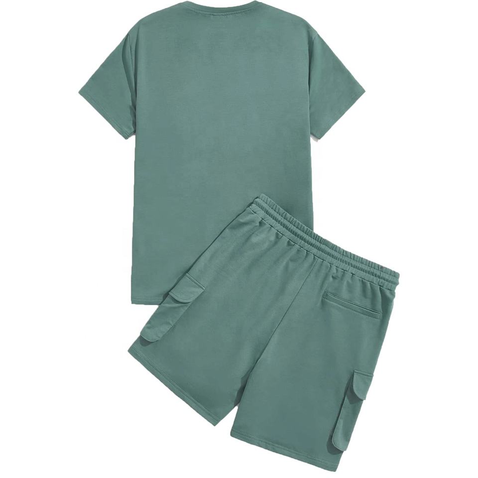 2026 hommes surdimensionné 2 pièces survêtement 100% coton maille tissu décontracté Hip Hop Style cordon Shorts couleur bloc t-shirts