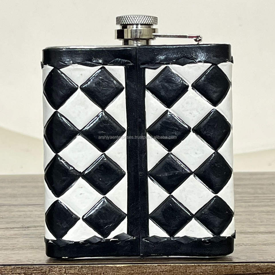 Flasque à alcool en cuir à carreaux travaillé à la main avec acier inoxydable