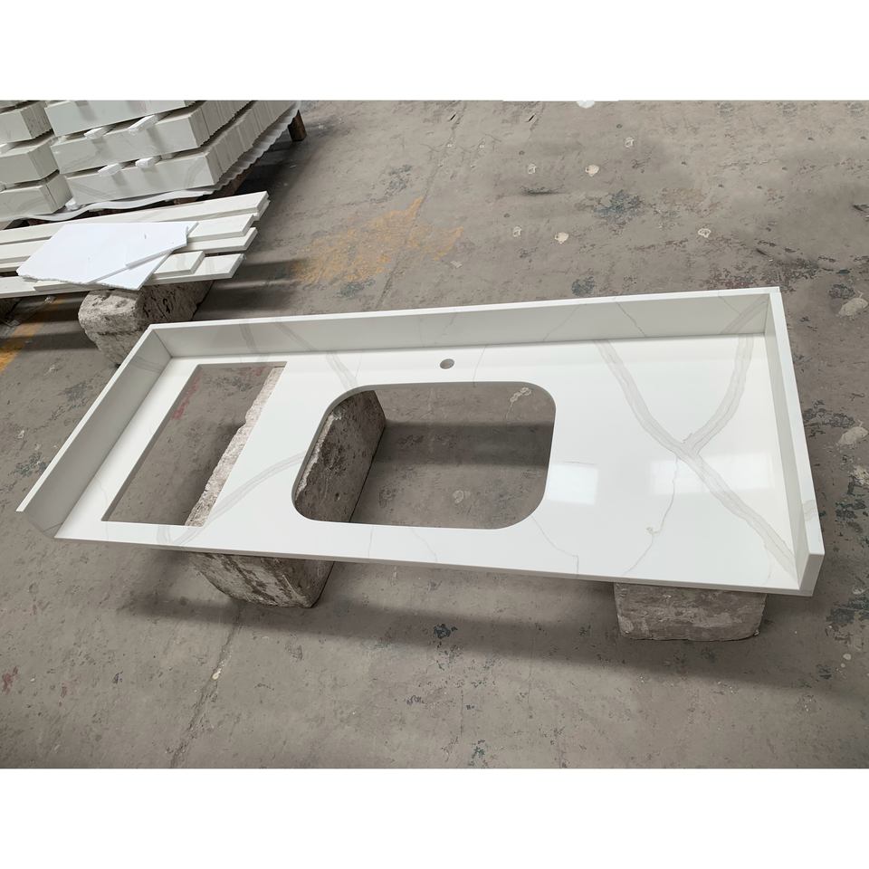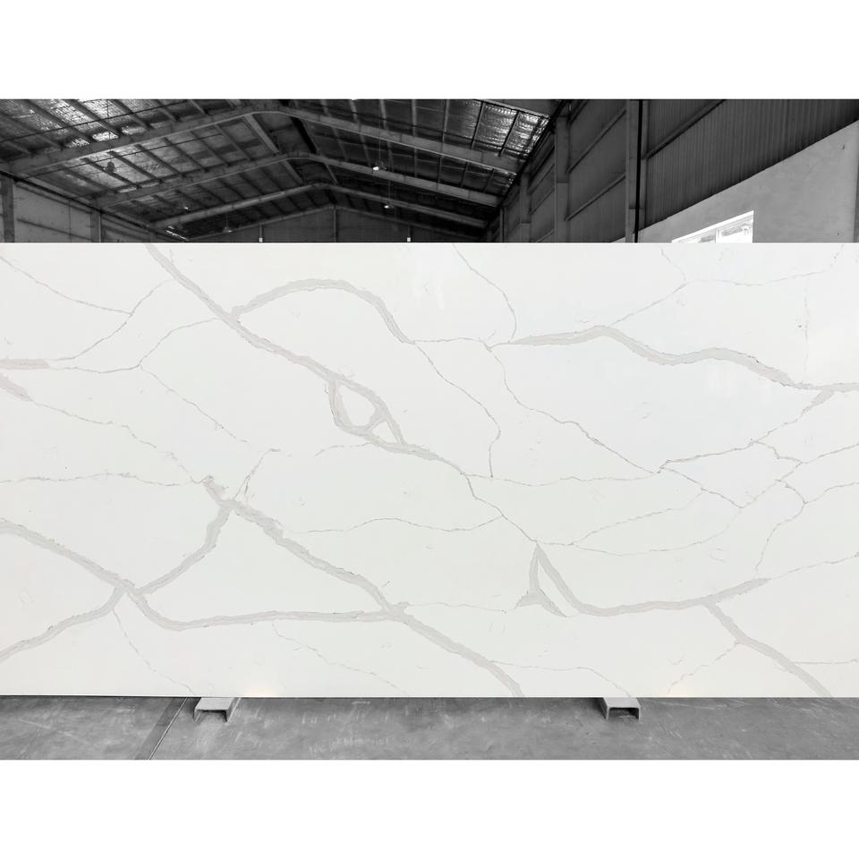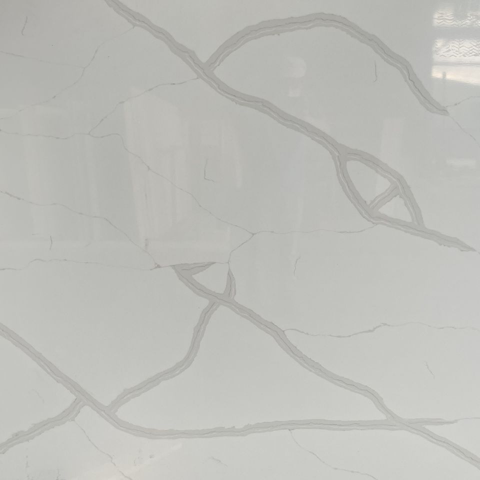 Nouvelles dalles de quartz Calacatta modernes 2026 avec veines grises pour salle de bain