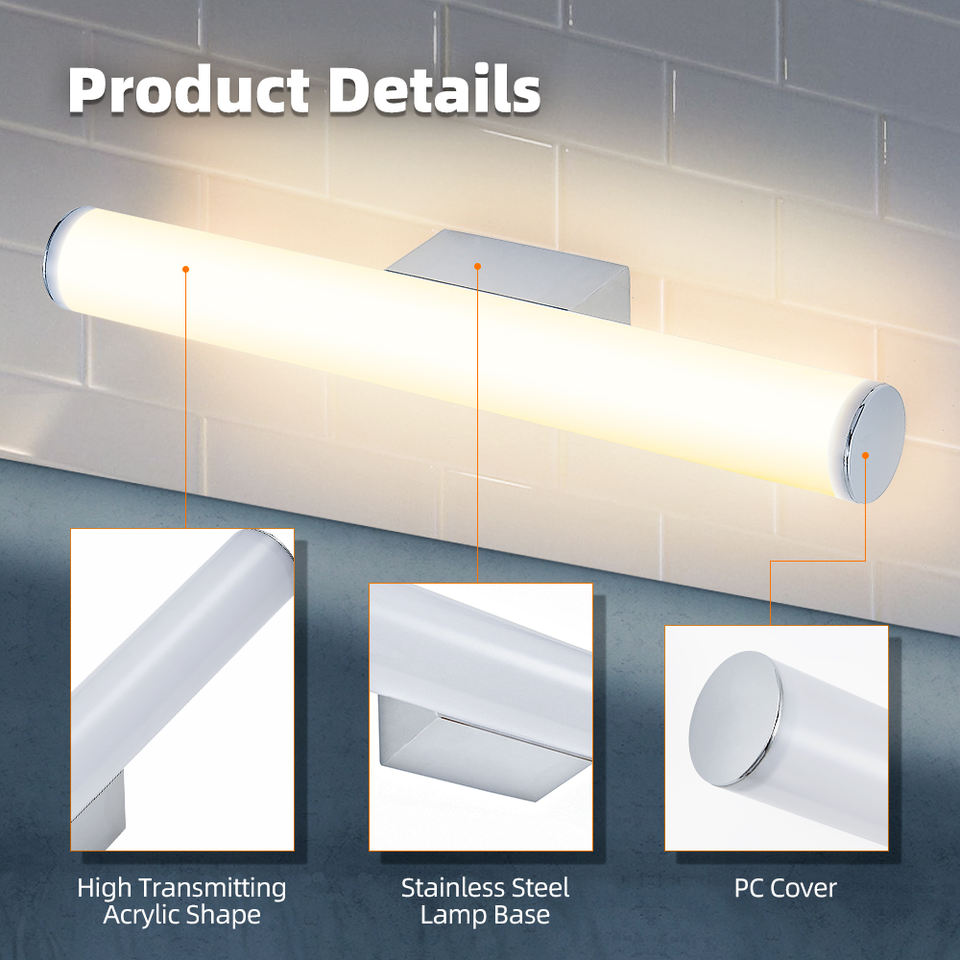 Lampe murale LED moderne 2026, nouveau design, lumière chaude 2700K, en acier inoxydable, pour intérieur, étanche IP44