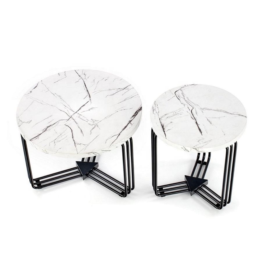 Table basse ronde moderne 2026 pour salon, style nordique, table basse gigogne, vente chaude, mobilier de maison, plateau effet marbre de luxe