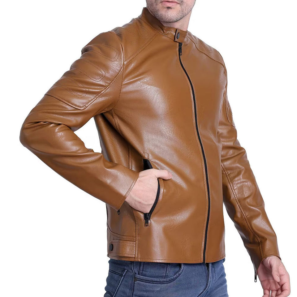 Blouson en cuir pour homme personnalisé de haute qualité, le plus populaire de 2026, avec col montant en toile, logo frontal, écologique, respirant et imperméable