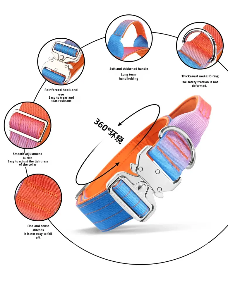 Nouveau Collier pour Chien Robuste 2026 avec Dégradé de Couleurs, 2 Pouces, en Néoprène Confortable et Métal Argenté pour l'Entraînement
