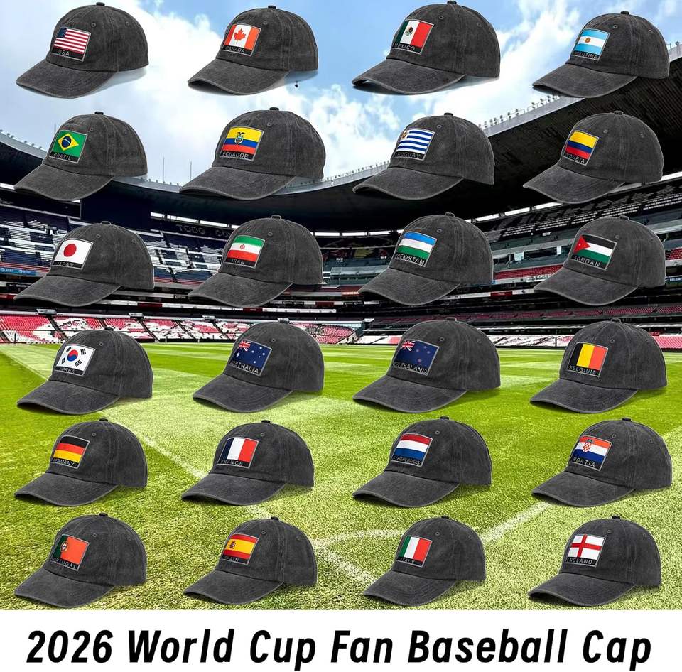 Casquette de baseball ajustable en PVC à 6 panneaux pour supporters de l'équipe nationale 2026, circonférence de tête de 48-50 cm