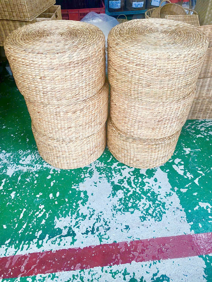 2026 Natural Water Hyacinth Floor Cushion Handmade Braided Round Ottoman