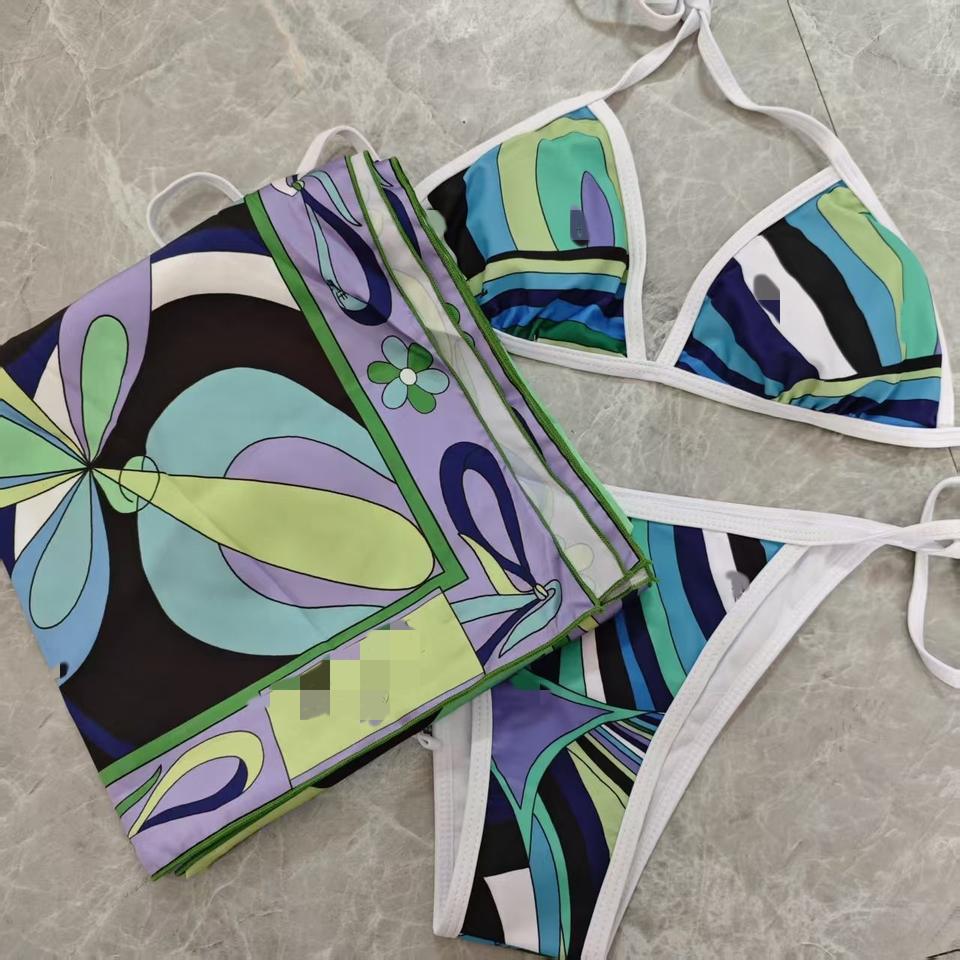 Nouveau Maillot de Bain Deux Pièces Rayé Halter 2026 pour Femme avec Bandeau et Foulard – Tenue de Plage Sexy