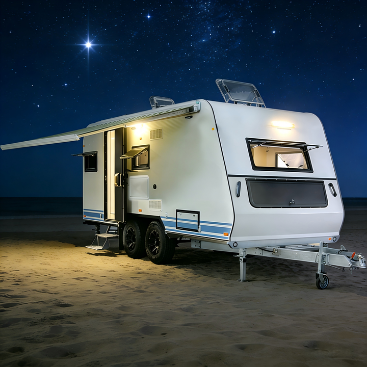 Caravane moderne légère avec châssis en fibre de verre et aluminium, suspension indépendante, conforme aux normes américaines, directement de l'usine