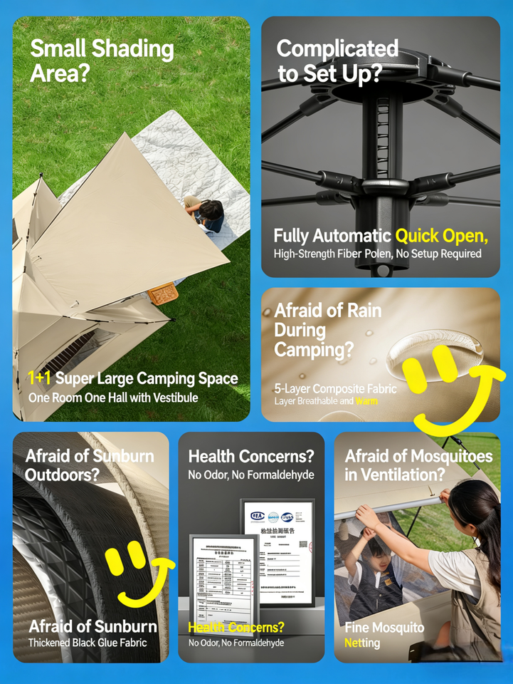 Automatique, Écologique, Coupe-vent, Imperméable, Portable, Grand espace, Résistant à l'eau, Léger, Équipement de campingDispositif