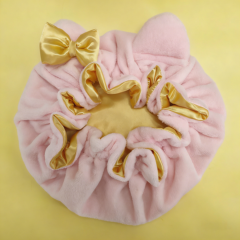 2026 New Arrival Adjustable Double Layered Satin Plush Bonnet Soft Pure Color Silk Liner Night Hats Bonnets for Women Kid