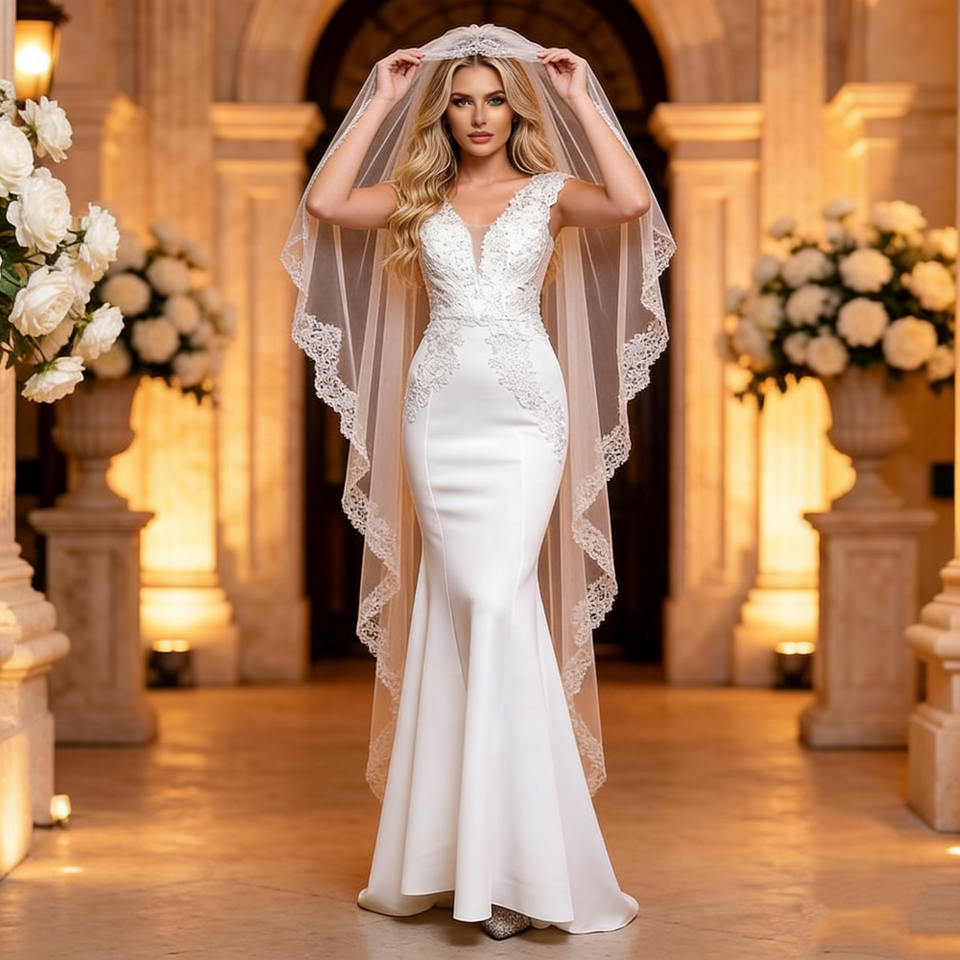 Nouvelle arrivée 2026, robe de mariée longue sirène en dentelle artisanale européenne, ornée de diamants, pour un toast de mariage, un dîner de remerciement