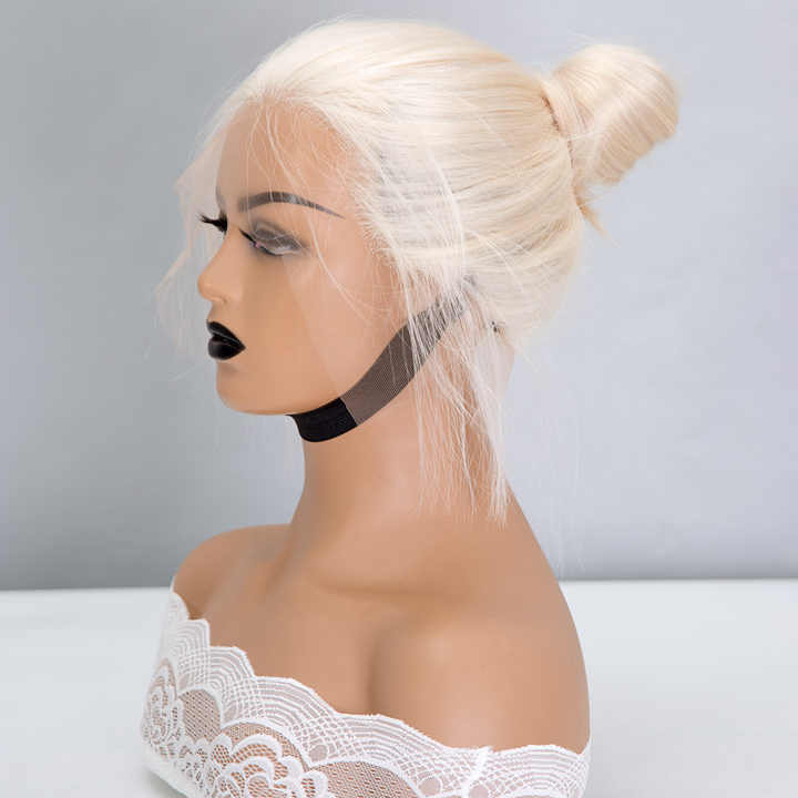 2026 New Arrival High Quality Virgin European Human Hair Lace Front Wigs for Lace Transparent High/Low Ponytail Bun White