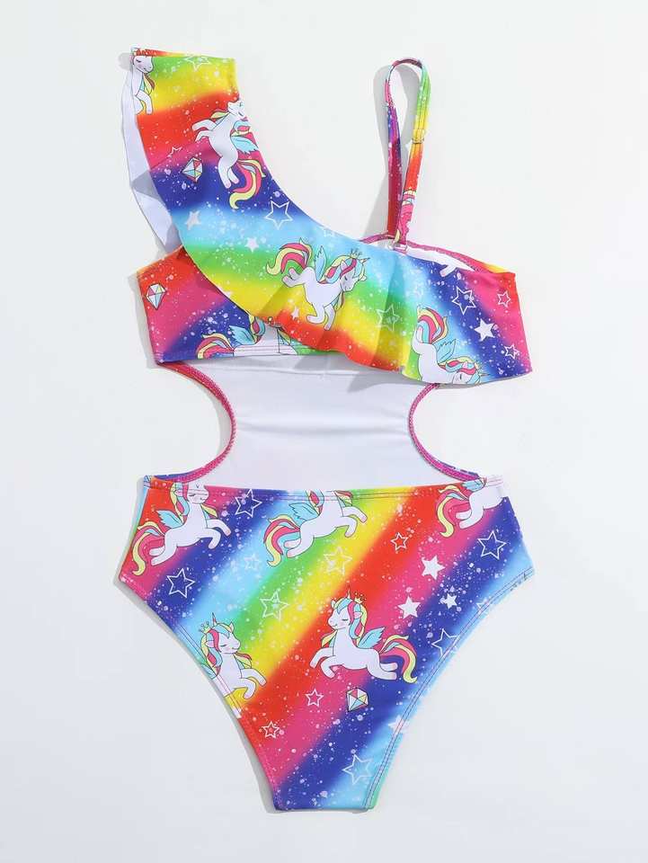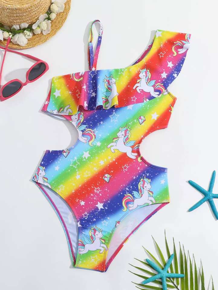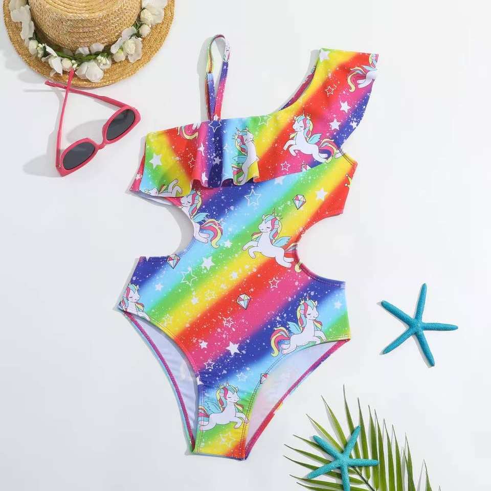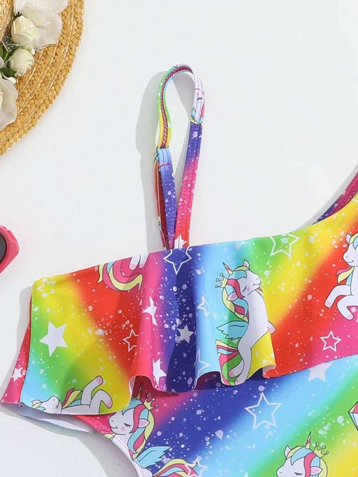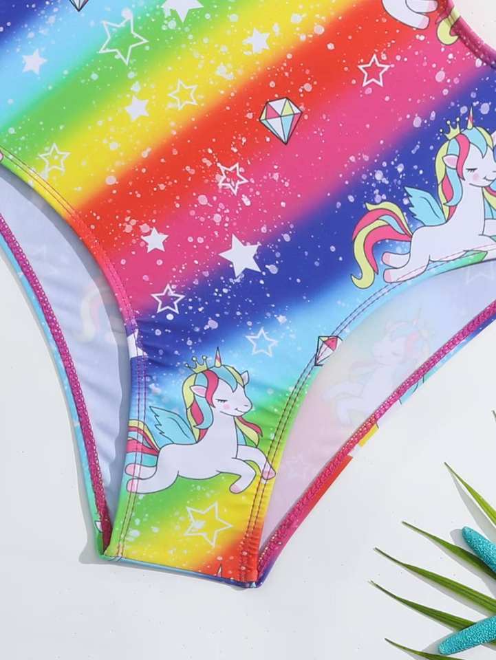 Nouveauté 2026 – Maillot de bain une pièce pour enfants, personnalisable en usine, motif licorne et étoiles arc-en-ciel – Maillot de bain magique pour l'été