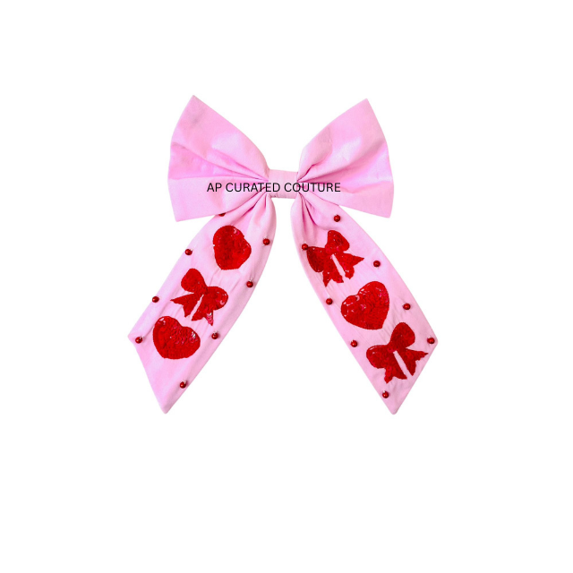 Nouveauté 2026 : Nœuds de cheveux de luxe faits à la main avec perles, barrettes ornées de cœurs, accessoires pour la Saint-Valentin pour femmes et filles