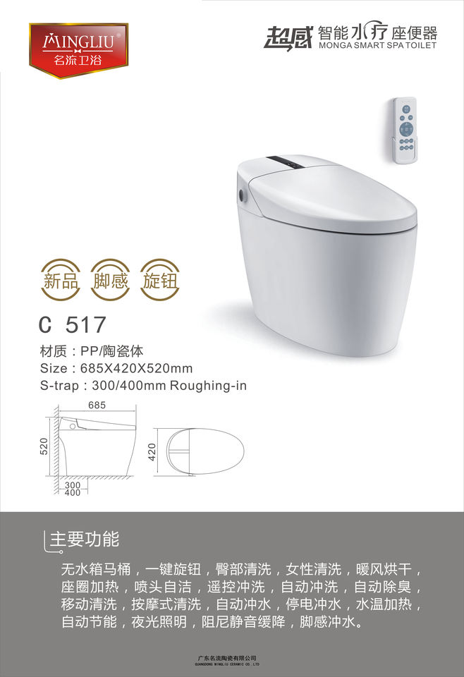 Nom du produit:Toilettes intelligentes électriques simples, WC intelligent avec sensation de pied