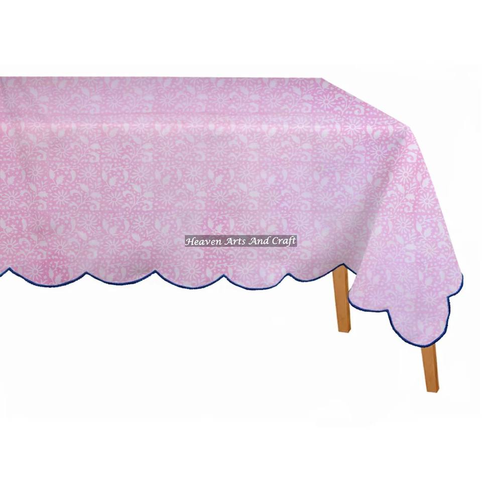 Nouvelle nappe rectangulaire en coton imprimée à la main motif floral festonné 2026 pour mariages et réceptions à domicile – En promotion !