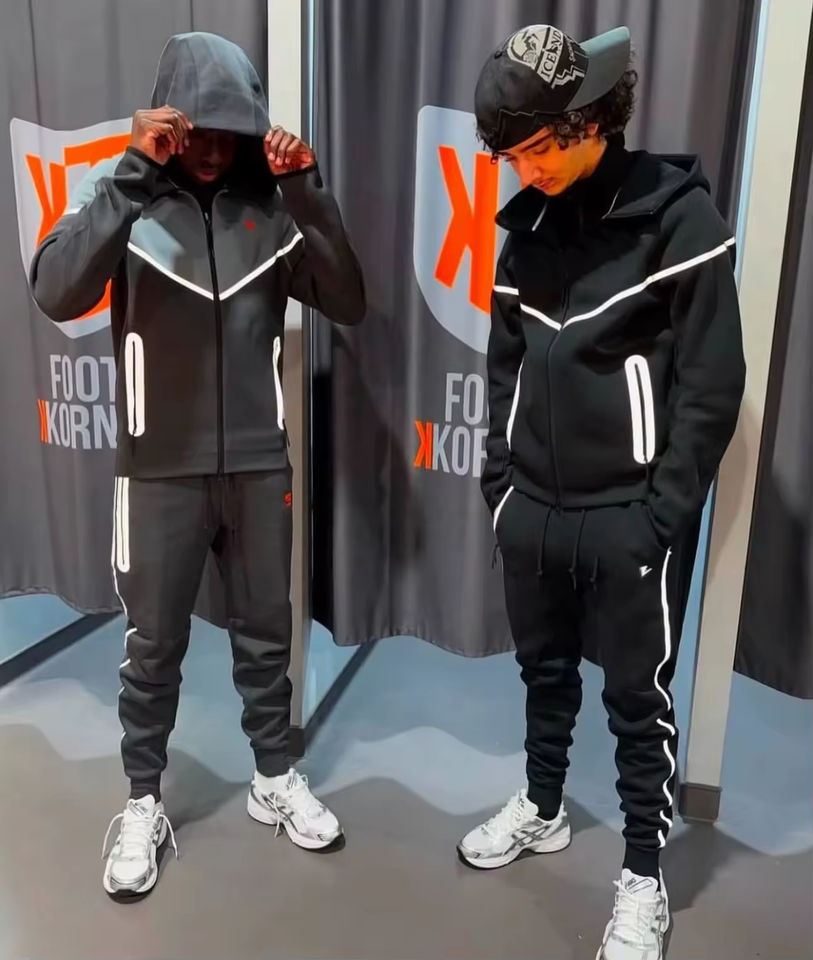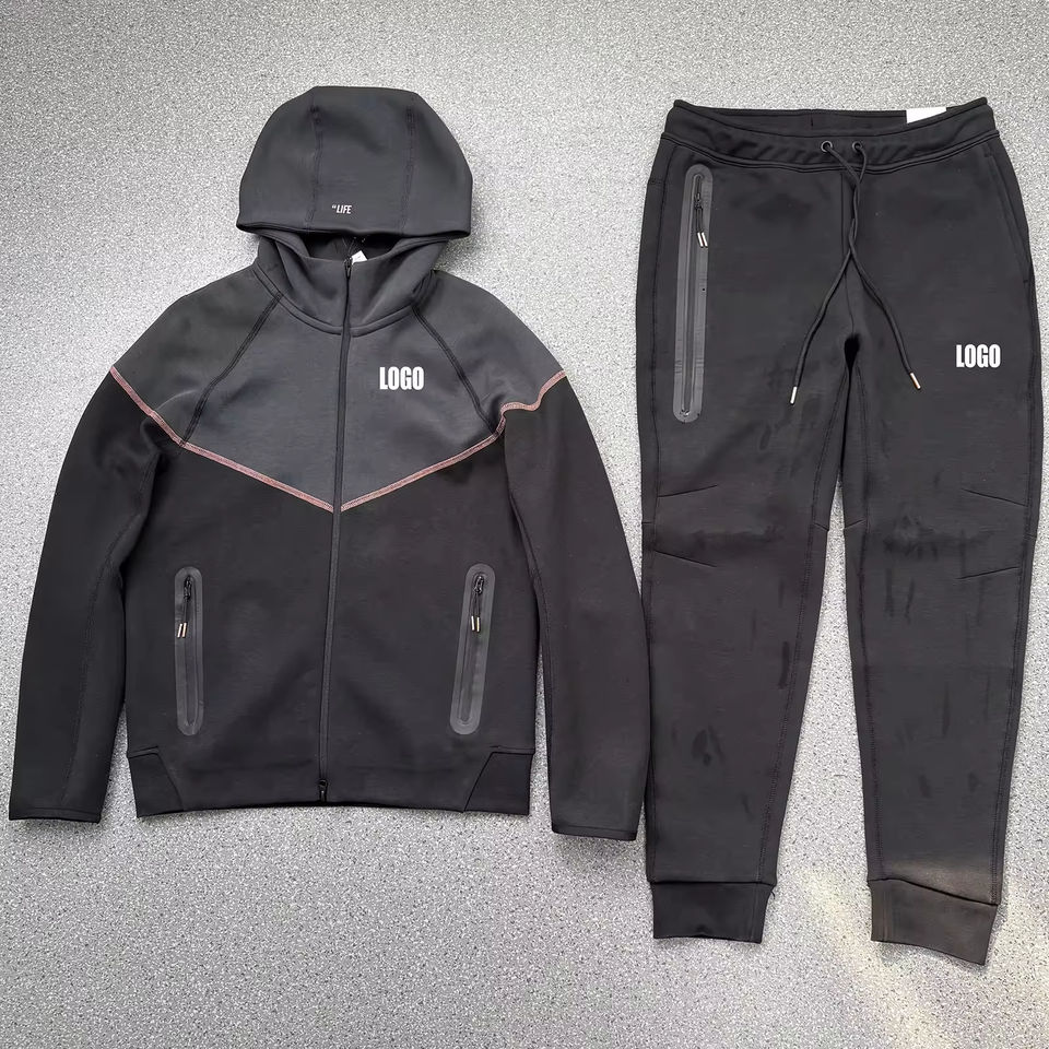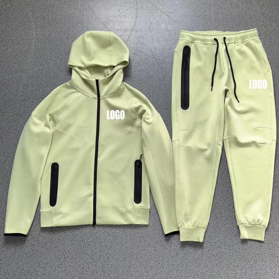 Nouvel ensemble de survêtement décontracté pour homme 2026 : veste à capuche en molleton technique avec logo personnalisé et pantalon de jogging deux pièces