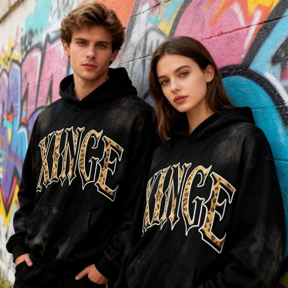 Nouveau Hoodie Homme Personnalisé Printemps 2026 Léger avec Broderie et Imprimé Lettres Patchwork, Coupe Oversize Boxy, Effet Délavé et Vieilli