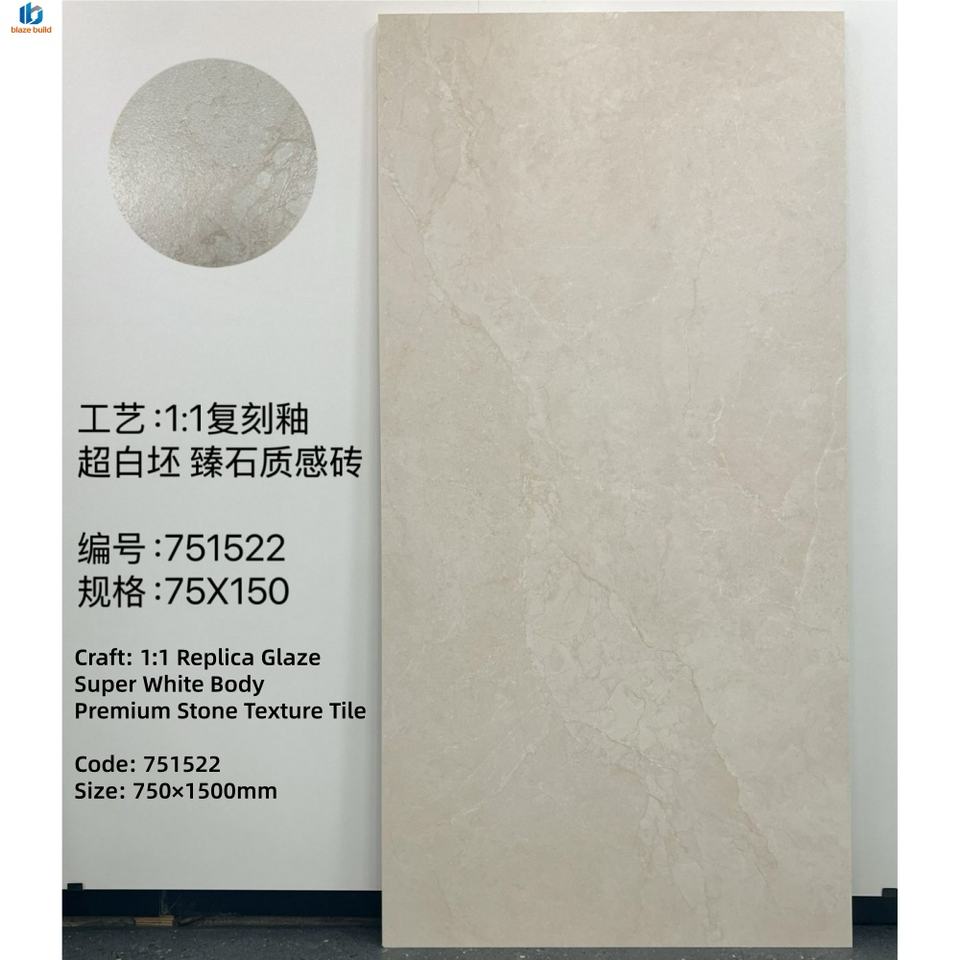 2026 New Design 1:1 Modern Bathroom Glazed Ceramic Tile 750x1500 Anti-slip Polished Glaze Marble Look Factory Wholesale