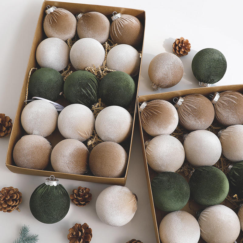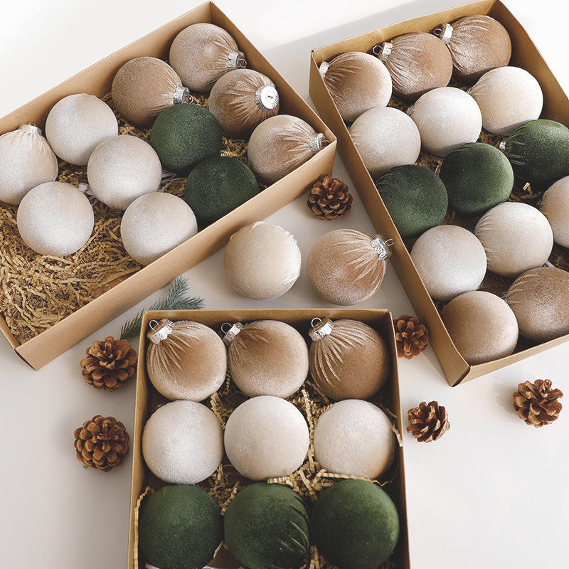 Nouvelle conception 2026, 12 pièces, boules de Noël en plastique enveloppées de tissu de 8 cm, décorations d'arbre de Noël, ornements, bolas de Navidad