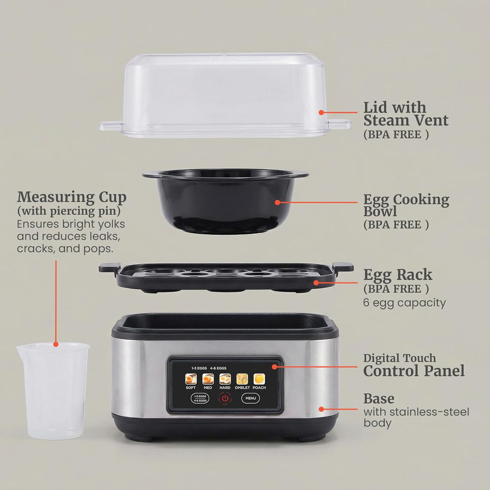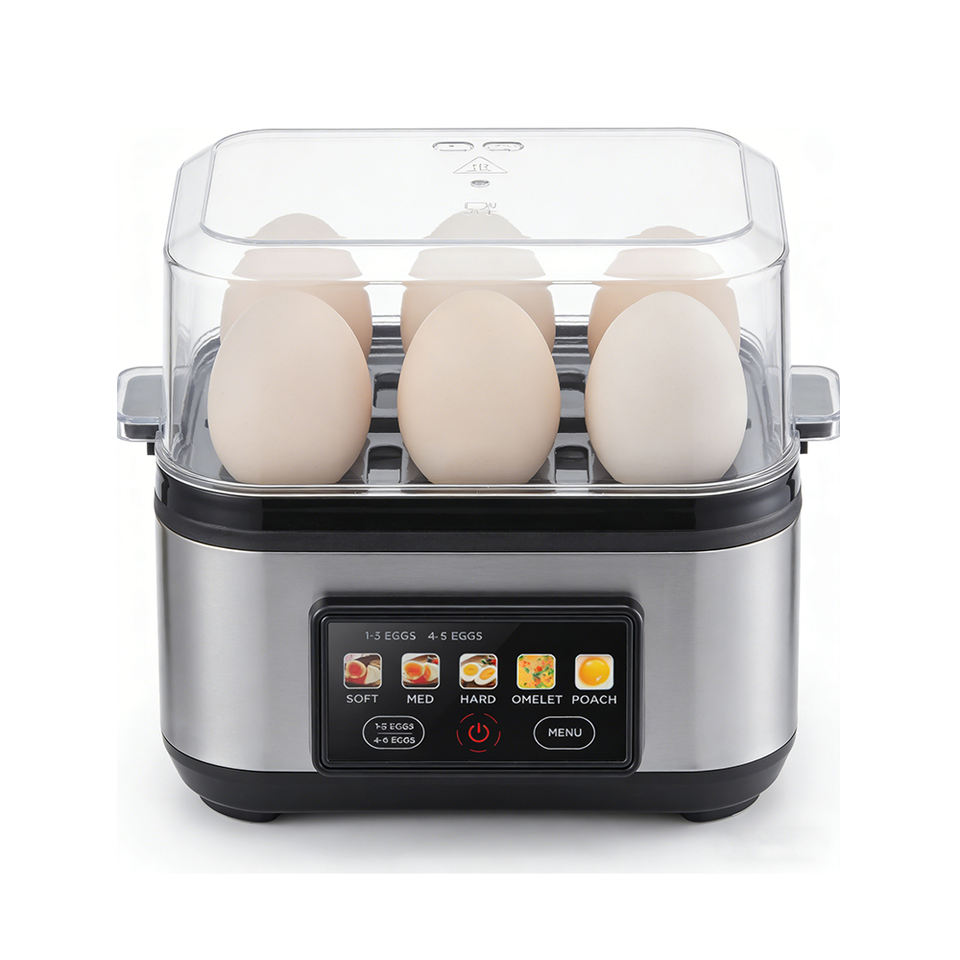 Nouveau design 2026, cuiseur à œufs électrique intelligent à affichage couleur, capacité de 6 œufs, forme carrée, pour œufs à la coque, semi-liquides ou durs