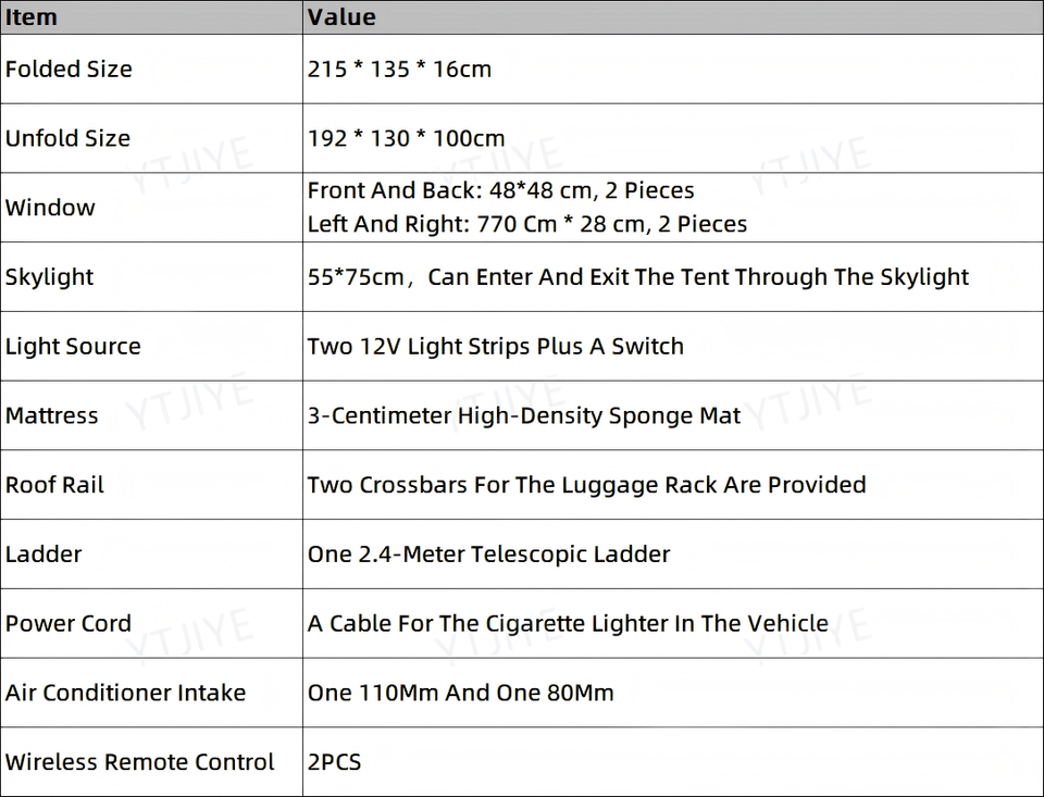 Nom du produit:Tente de toit électrique pliante en alliage d'aluminium