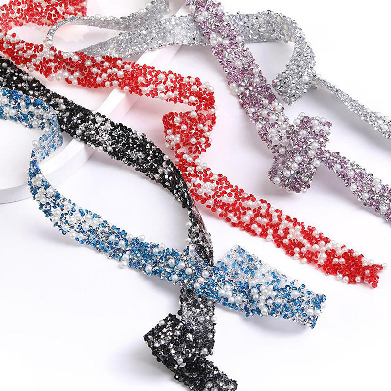 Nouveau design 2026 – Ruban de chaîne multicolore en verre, fausse perle et strass, à coller ou à coudre, pour sacs, voitures et masques – Vente en gros