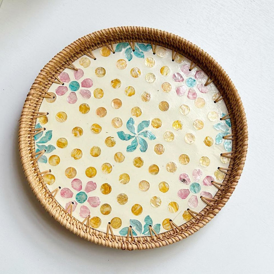 Nouveau Plateau de Service Rectangulaire en Rotin 2026, Écologique, Style Bohème, Pliable pour Pique-nique, Incrustation Nacre, Fabrication Vietnamienne (OEM)