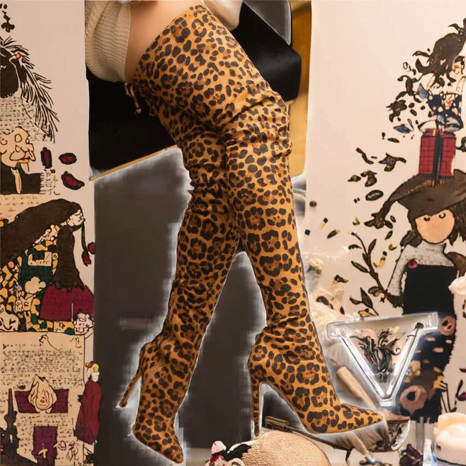 Nouvelles Bottes à Talons Aiguilles pour Femmes 2026, Modèle Léopard Sexy, au-dessus du Genou, à Bout Pointu et Embout en Acier