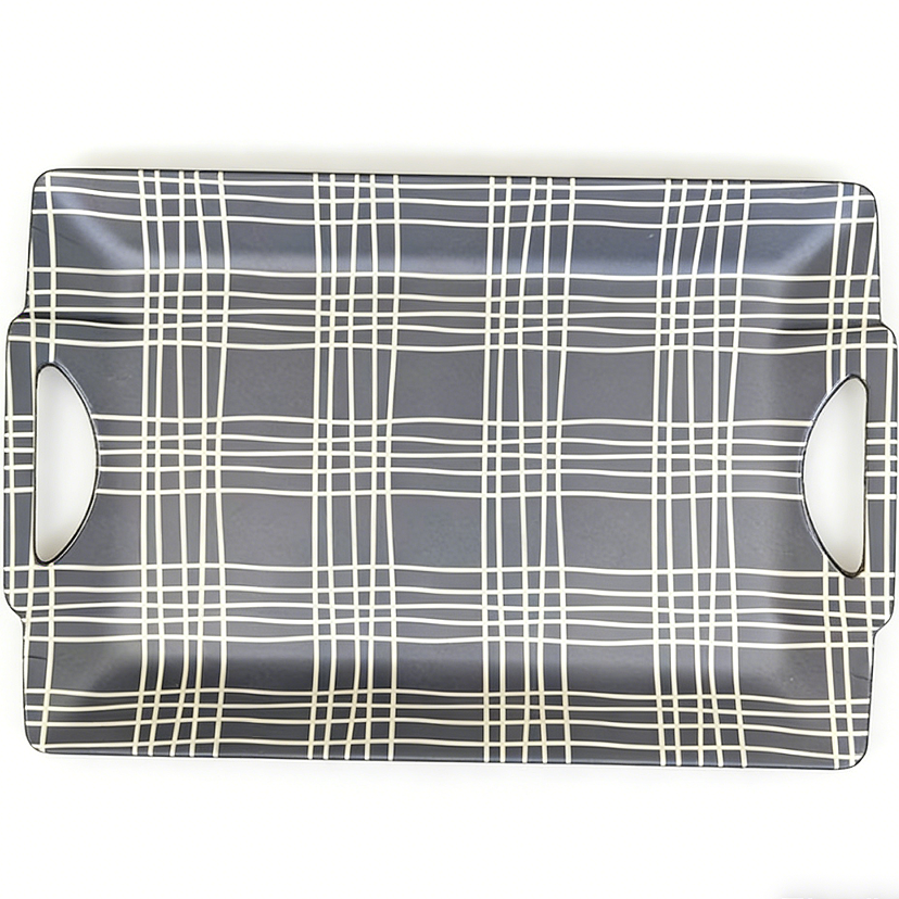 Style:Plateau de service en mélamine à motif à carreaux et quadrillé