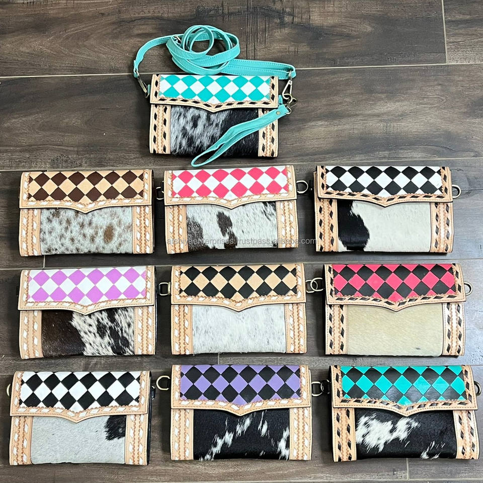 Nouveau 2026 Pochette bandoulière de haute qualité en cuir de vachette à poils naturels, motif à carreaux, en cuir travaillé à la main, avec dragonne, mini sac