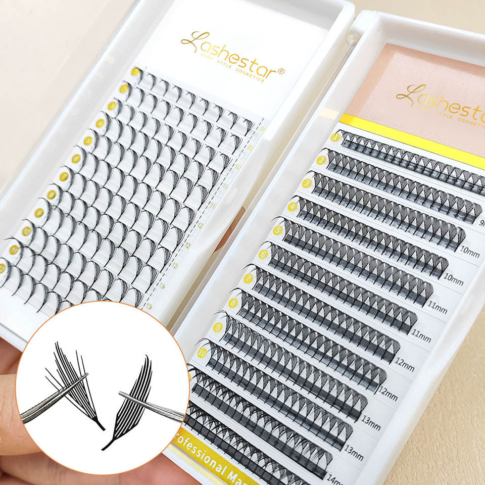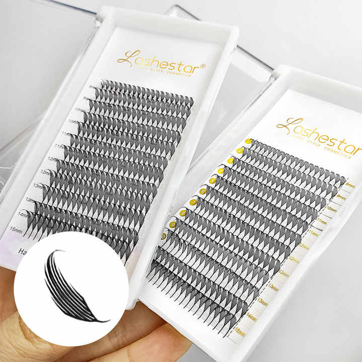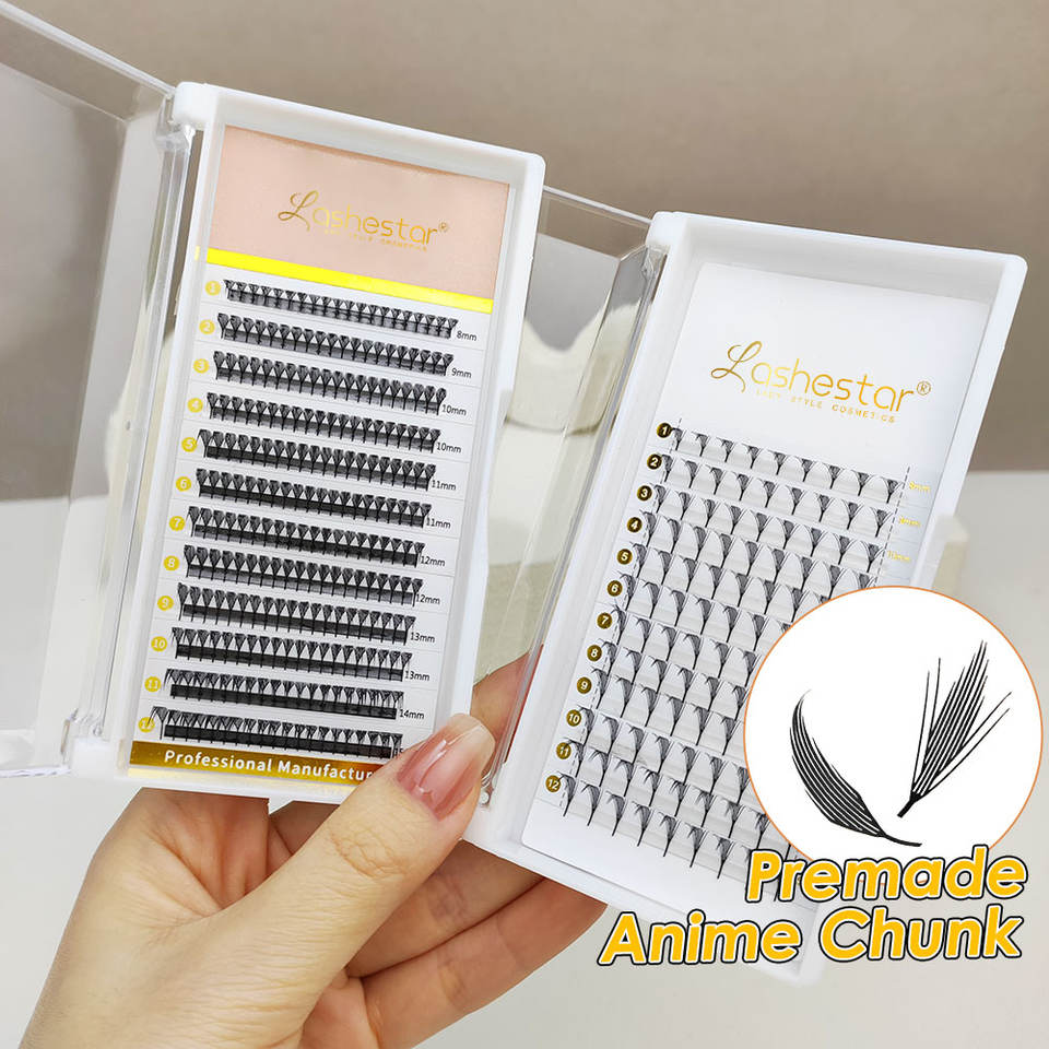 Nouvelles extensions de cils 2026 : Deux types de cils anime super doux, pré-faits en éventail, courbure CD, sur plateau