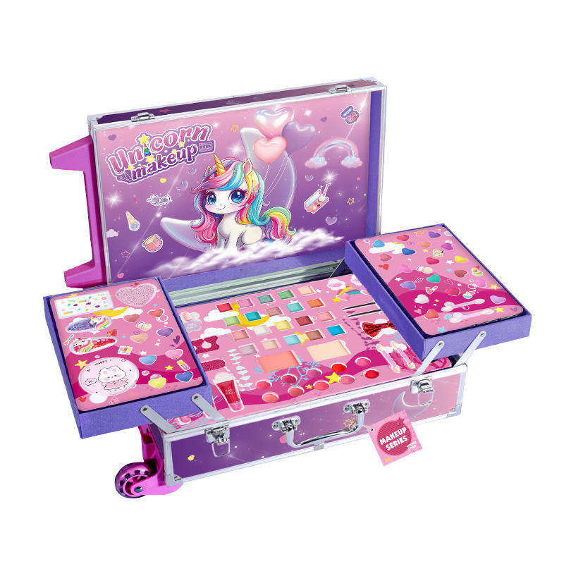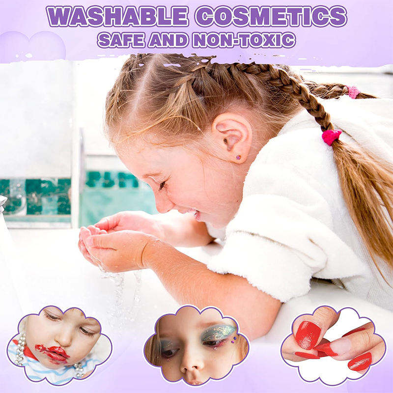 Nouveau modèle 2026 : Coffret de maquillage tout-en-un pour enfants avec valise double couche – Kit de cosmétiques pour petites filles (ombres à paupières, rouge à lèvres) – Boîte cadeau