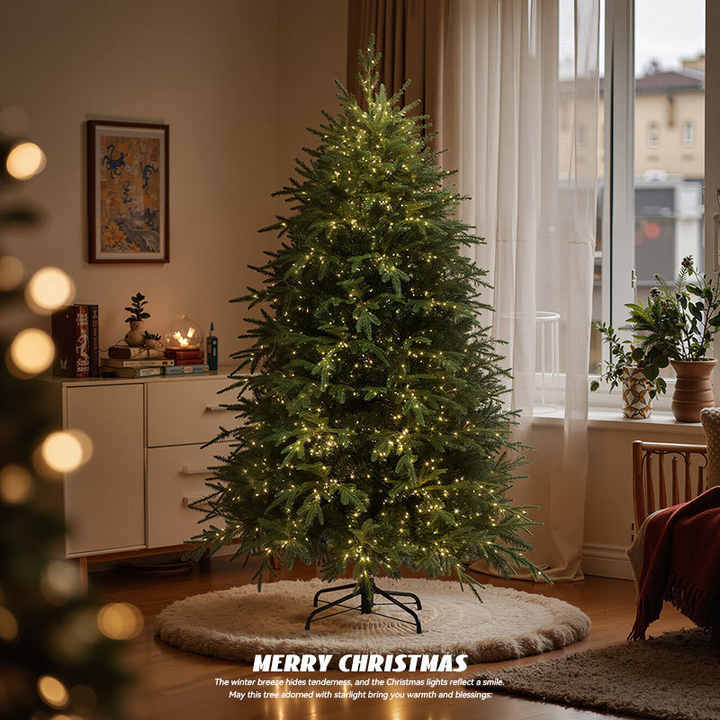 Nouveau Modèle 2026 Sapin de Noël Canadien en Pin Noble, Entièrement en PE, Lumineux, Haut de Gamme, Écologique, Décorations de Noël pour la Maison