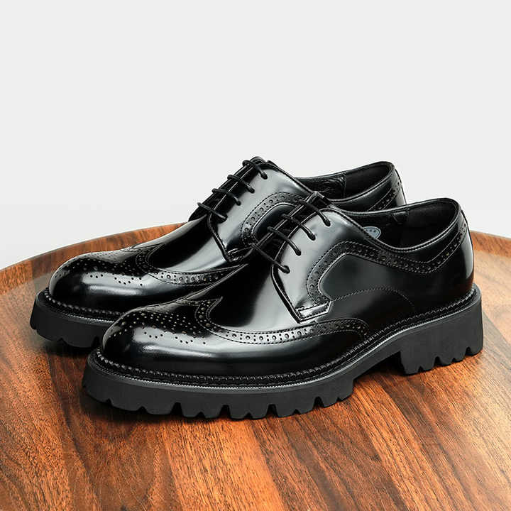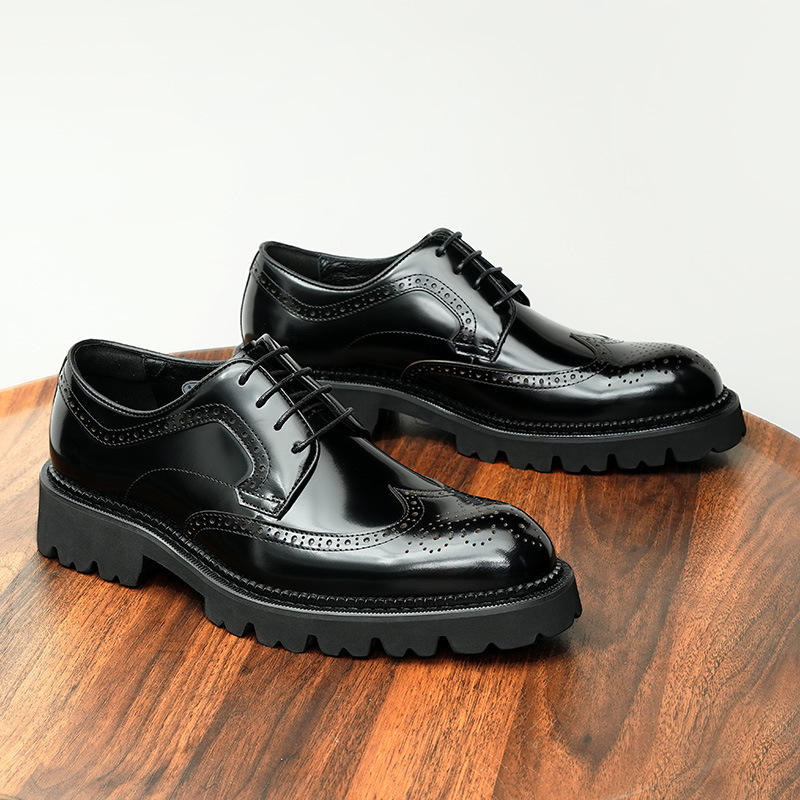Nouvelles Chaussures en Cuir Épais pour Hommes Modèle 2026 - Chaussures Habillées Formelles en Cuir Brillant Gaufré Respirantes pour Hommes