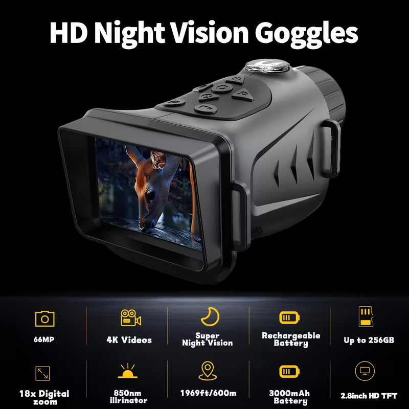 Nouveau modèle 2026 – Caméra de vision nocturne infrarouge monoculaire haute définition 18X avec visée croisée, résolution 640x480, portée 5-900m