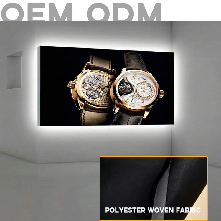 Nouvelle boîte lumineuse publicitaire en tissu noir imprimé UV personnalisé en polyester tissé 2026 pour magasin de téléphonie