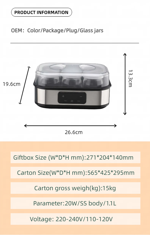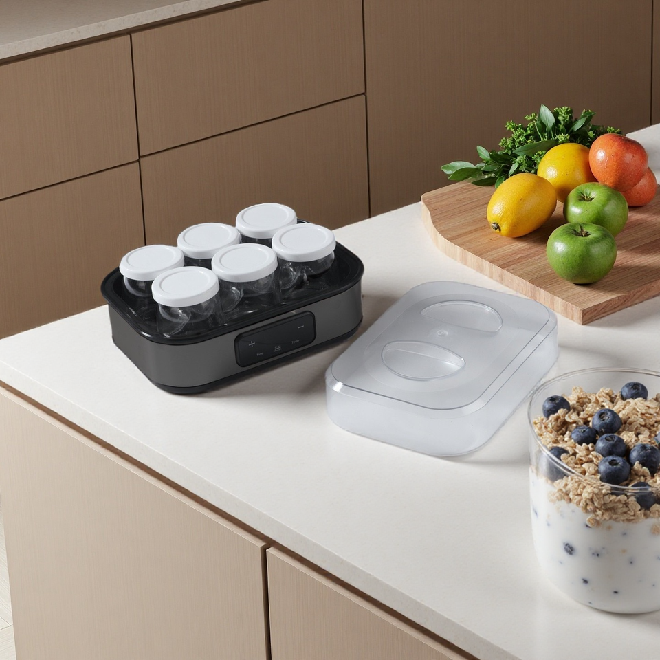Nouveau 2026 Appareil à yaourt grec portable mini avec 6 pots en verre, en acier inoxydable, électrique domestique à température constante