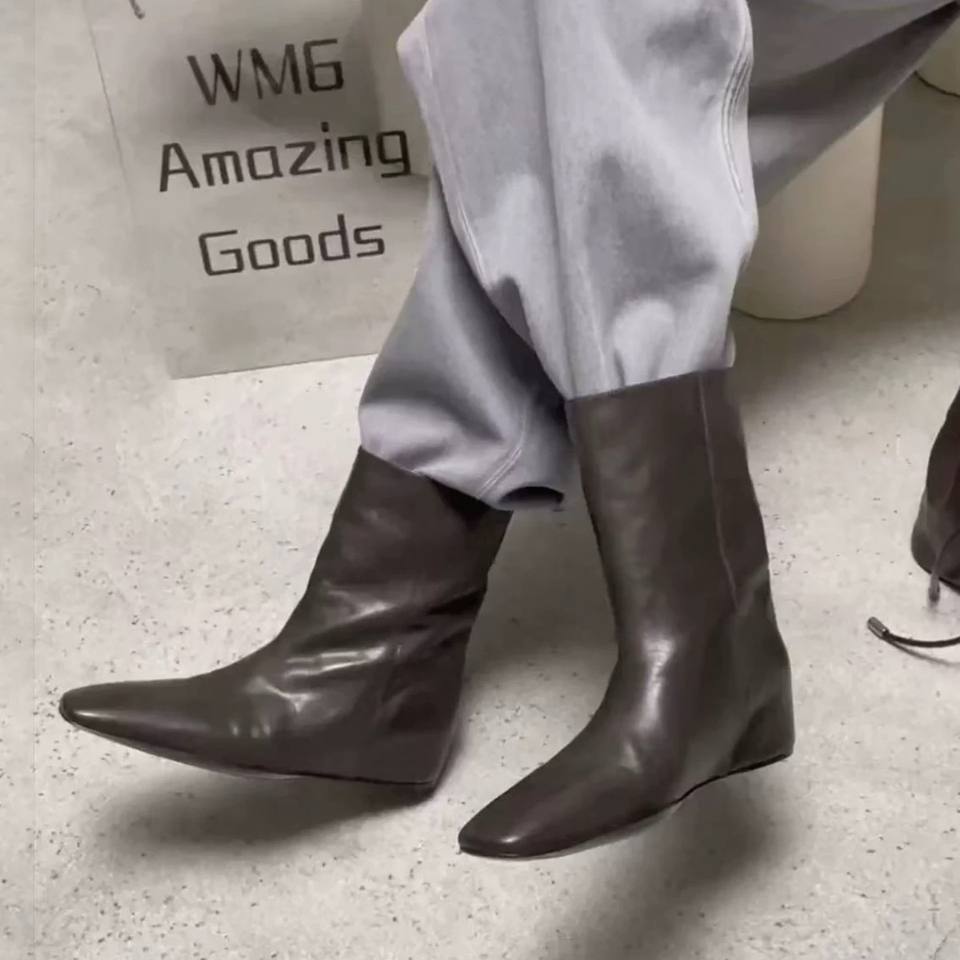 Nouvelles Bottes Mi-Mollet Rétro Britanniques à Bout Carré Rehaussantes pour Femmes 2026 – Bottes Slim Polyvalentes