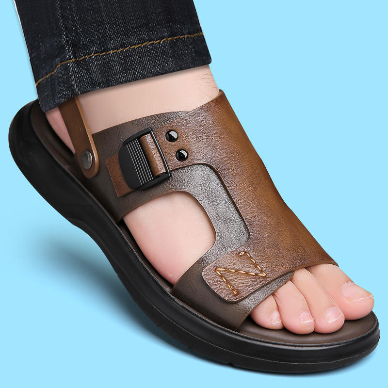 Nouvelles sandales à enfiler pour hommes 2026, double usage, pour l'extérieur et la conduite, avec semelle intérieure en latex et semelle souple, idéales pour la plage – Vente en gros