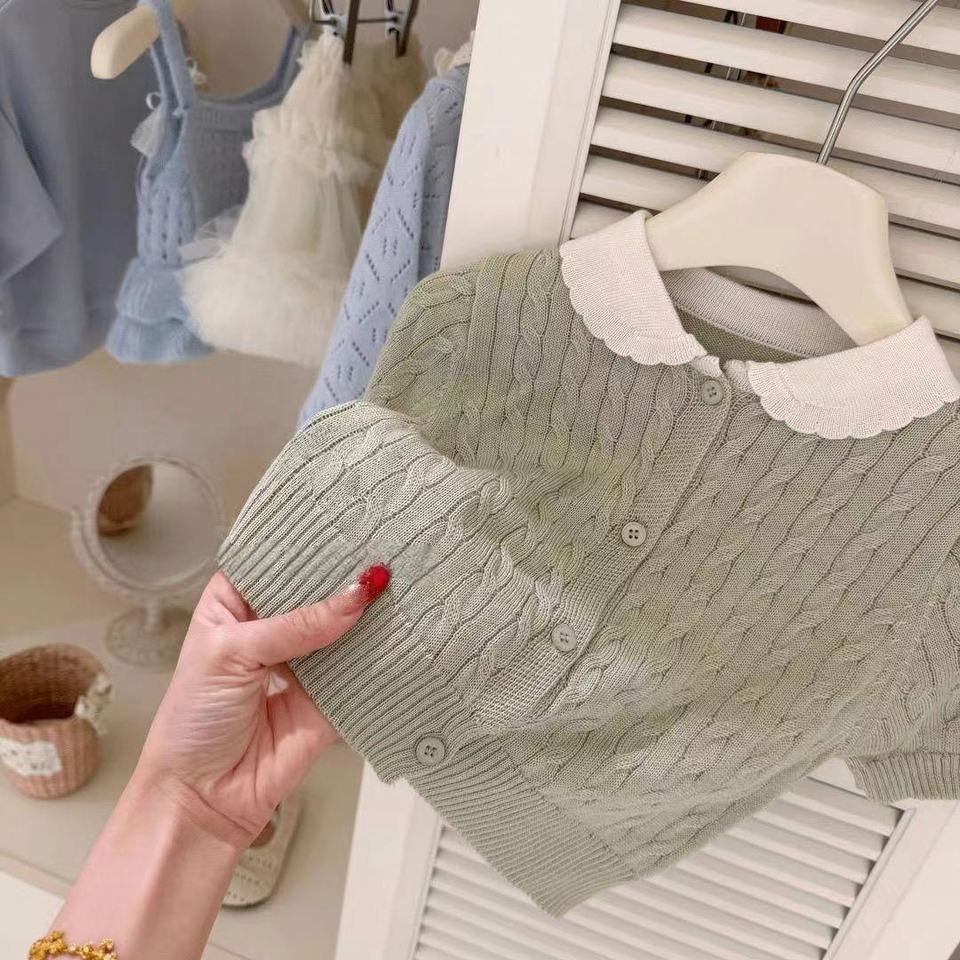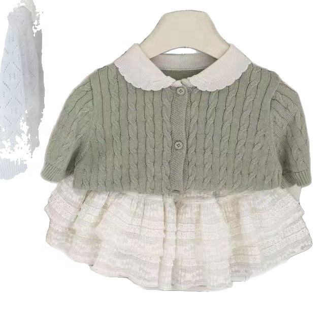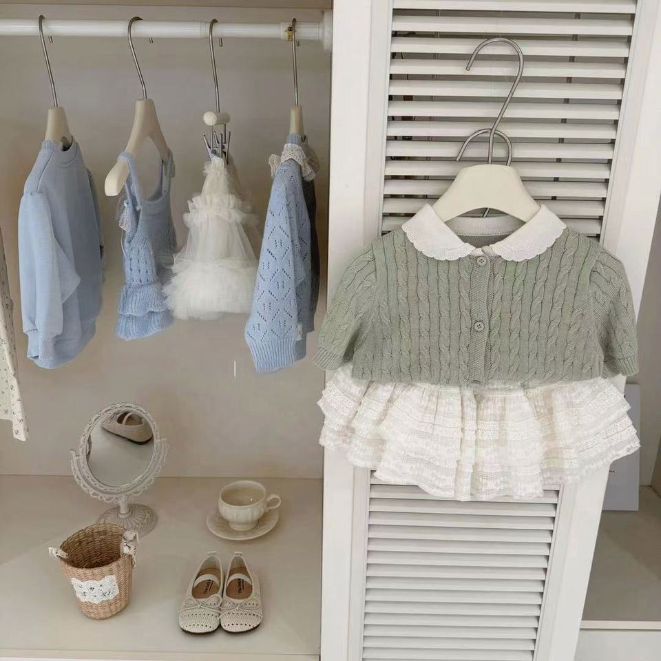 Nouvel ensemble de vêtements printemps-été 2026 pour filles - Ensemble deux pièces tendance en tricot à manches courtes et jupe à volants