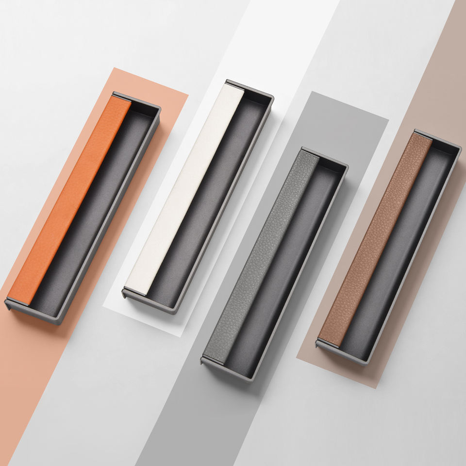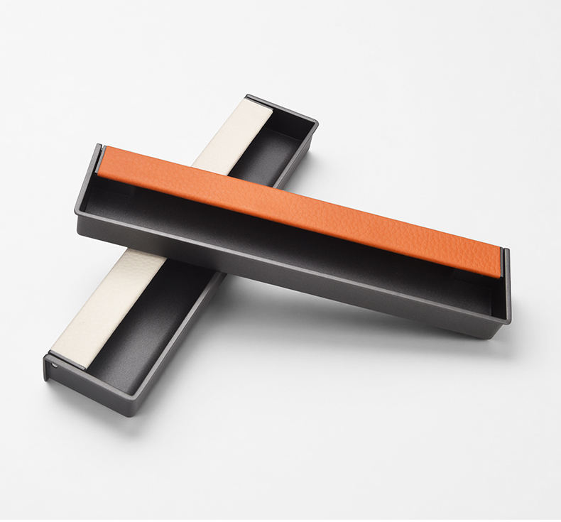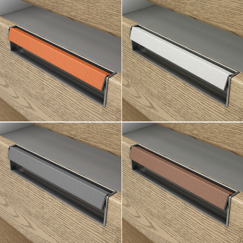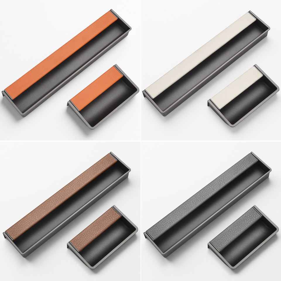 Nouvelle poignée invisible encastrée à fente, style 2026, en alliage de zinc avec incrustation en cuir pour armoires, placards et tiroirs