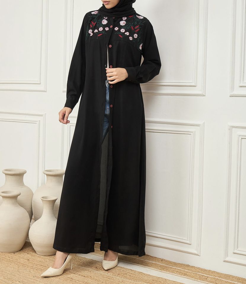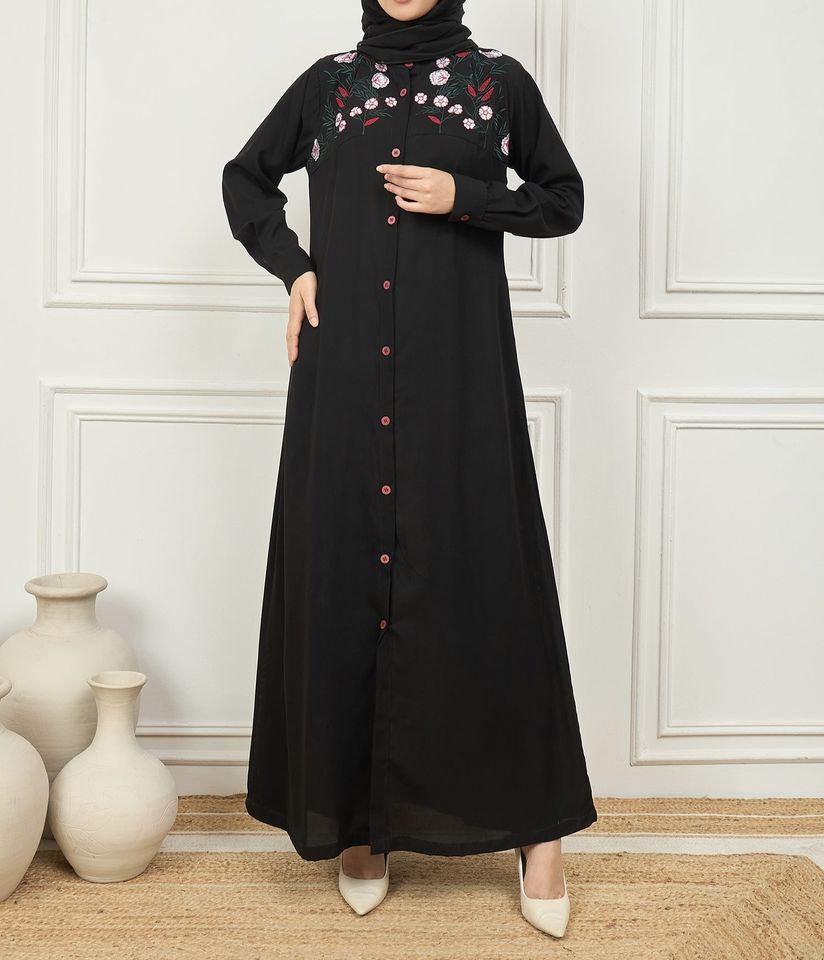 Nouvelle Robe Abaya Turque Modeste 2026, Vêtement Islamique Ouvert sur le Devant, Longue Robe pour Femmes Musulmanes en Polyester à Col en V Floral