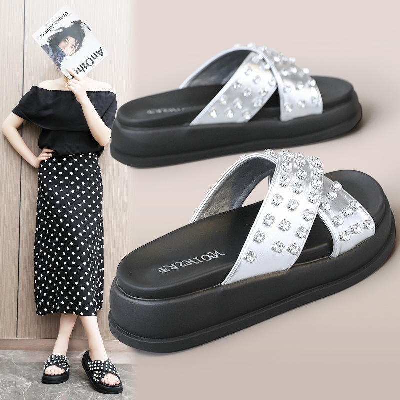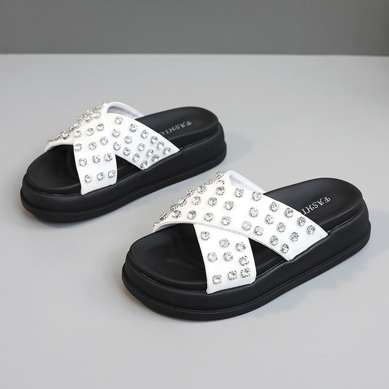 Nouveaux styles 2026 – Sandales d'été respirantes à semelle souple et plate, rehaussantes, antidérapantes, avec strass, pour femme